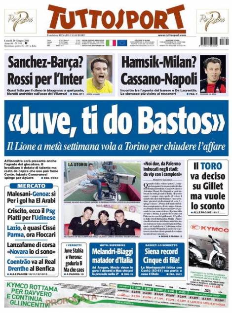 JUVENTUS TUTTOSPORT BASTOS – Su Tuttosport si parla del mercato Juventus con l’arrivo di Bastos.