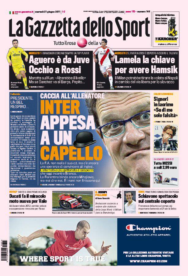 GAZZETTA INTER CAPELLO – Sulla Gazzetta dello Sport si parla di Capello, candiato numero uno alla panchina dell’Inter.