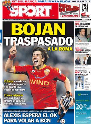CALCIOMERCATO ROMA BOJAN FOTO – E’ praticamente fatta per il trasferimento di Bojan Krkic dal Barcellona alla Roma. Nella notte le due società hanno trovato l’accordo e lo stesso giocatore si dice voglioso di iniziare al più presto questa nuova avventura. Nel frattempo il quotidiano Sport, uno dei giornali iberici catalani, ha pubblicato un simpatico fotomontaggio in cui il giovane talento spagnolo indossa la casacca della Roma: come gli sta? A voi il giudizio…