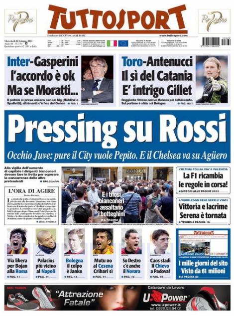 TUTTOSPORT ROSSI PRESSING – Su Tuttosport si parla del mercato Juventus con il possibile assalto a Giuseppe Rossi del Villareal.