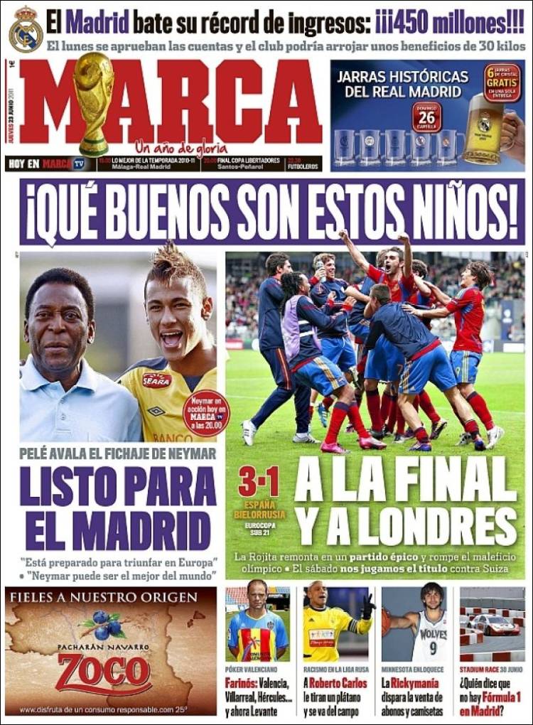 MARCA REAL MADRID PELE’ – L’ex grande calciatore brasiliano Pelè incorona Neymar definendolo già pronto per giocare nel Real Madrid.