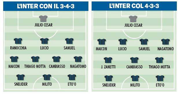 CALCIOMERCATO INTER GASPERINI FOTO – Gian Piero Gasperini è un amante del 3-4-3, modulo tattico molto offensivo e spregiudicato che ha portato tanti frutti al Genoa. L’allenatore piemontese però all’Inter potrebbe anche puntare sulla difesa a quattro, per questo il modulo potrebbe essere il 4-3-3. Nel 3-4-3 la difesa sarebbe composta da Lucio al centro, con Ranocchia e Samuel ai lati, mentre a centrocampo esterni alti Nagatomo e Maicon (anche se potrebbe andare via) con Thiago Motta e Cambiasso centrali. In attacco tridente con Milito centrale ed Eto’o e Sneijder ai lati. Nel 4-3-3 fuori un centrale di difesa e dentro Zanetti a centrocampo. Ecco la foto del Corriere dello Sport.