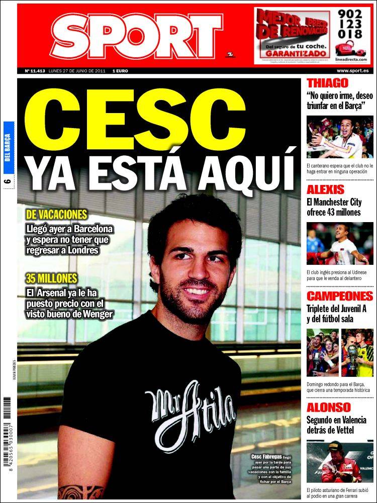 CALCIO RASSEGNA STAMPA SPORT BARCELLONA FABREGAS – I catalani di Sport sono sicuri: Cesc Fabrega vestirà la maglia del Barcellona.