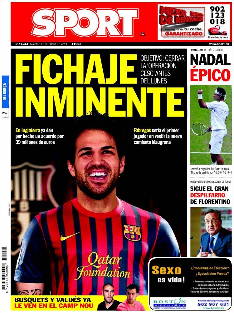 SPORT BARCELLONA FABREGAS – Sul quotidiano catalano Sport si parla di Fabregas, centrocampista dell’Arsenal, molto vicino al Barcellona.