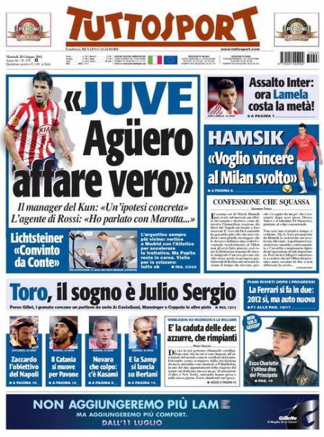 TUTTOSPORT JUVENTUS AGUERO – Su Tuttosport si parla di Aguero, attaccante dell’Atletico Madrid che piace molto alla Juventus.