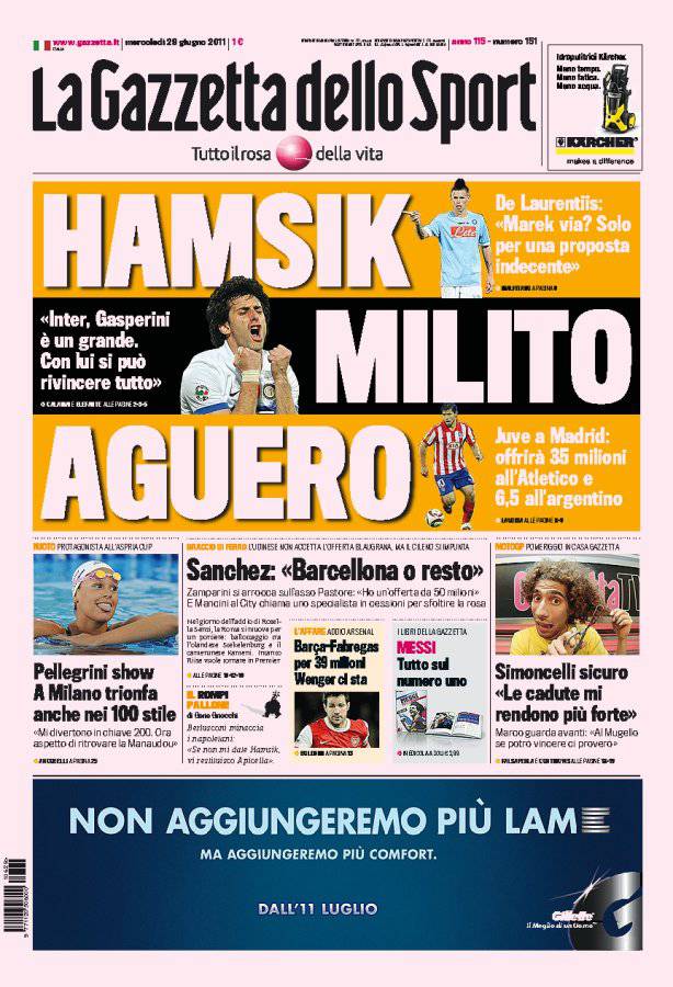 GAZZETTA HAMSIK MILITO AGUERO – Sulla Gazzetta dello Sport si parla di Hamsik, Milito e Aguero, tre protagonisti di questo mercato.