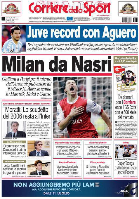 CORRIERE MILAN NASRI – Sul Corriere dello Sport si parla del mercato Milan con il possibile arrivo di Nasri.