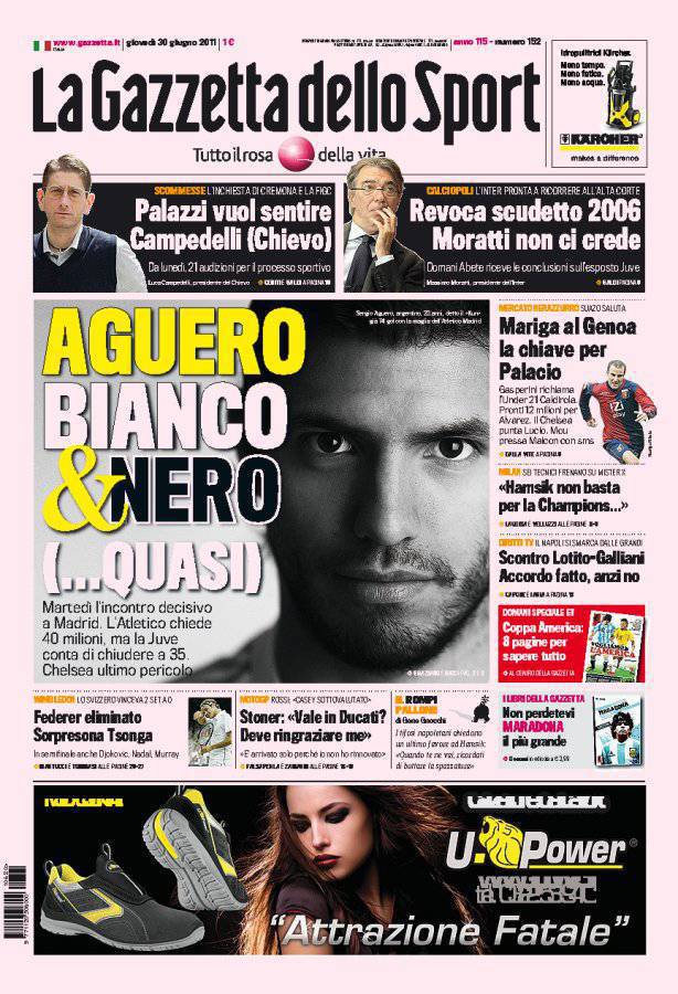 GAZZETTA AGUERO JUVENTUS – Sulla Gazzetta dello Sport si parla del mercato Juventus con il possibile arrivo di Sergio Aguero.