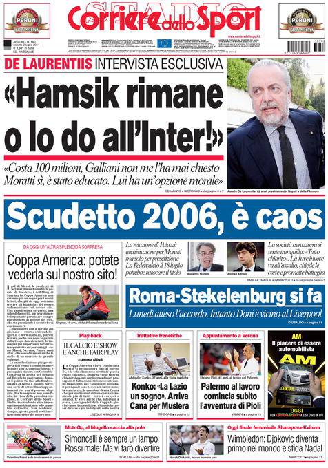 CORRIERE HAMSIK INTER – Sul Corriere dello Sport intervista esclusiva al presidente del Napoli De Laurentiis che parla del futuro di Hamsik.