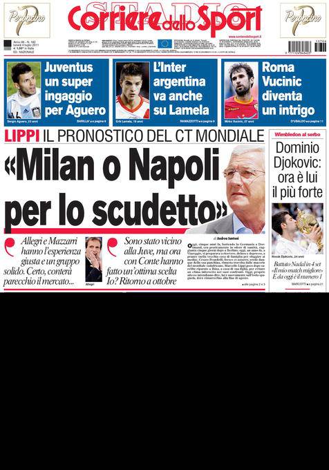 CORRIERE MILAN NAPOLI – Sul Corriere dello Sport intervista esclusiva a Marcello Lippi, ex c.t. della Nazionale italiana, che parla di Milan o Napoli per lo scudetto.