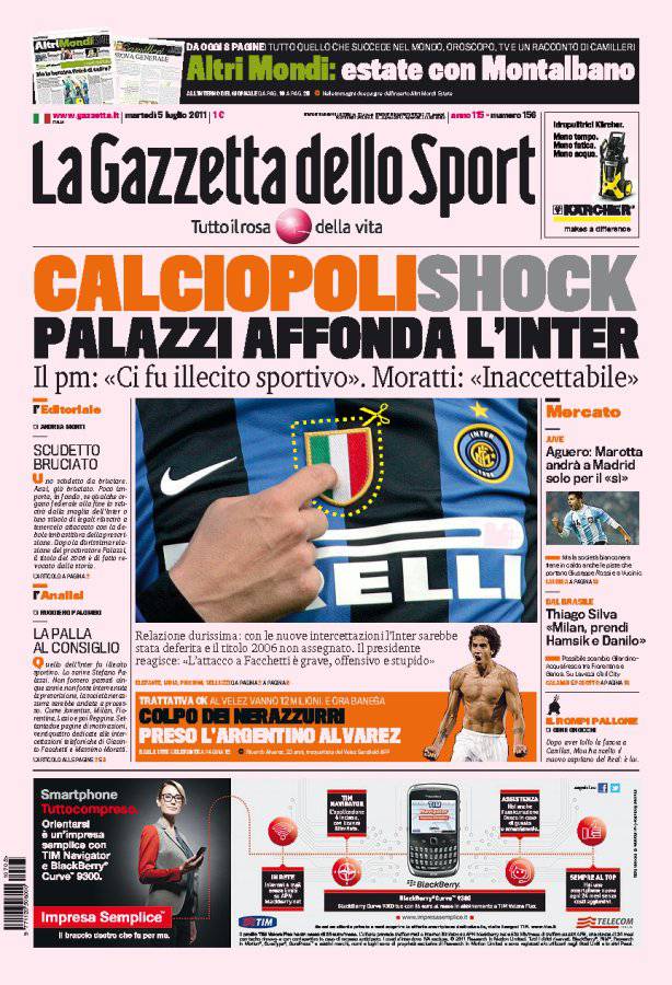GAZZETTA CALCIOPOLI PALAZZI INTER – Sulla Gazzetta dello Sport titolo ovviamente per quanto riportato dal P.M. Palazzi riguardo la posizione dell’Inter nella vicenda Calciopoli.
