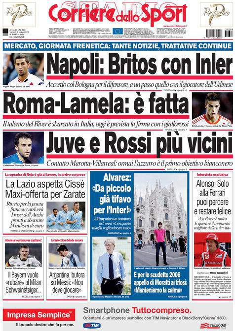 CORRIERE NAPOLI BRITOS INLER – Napoli scatenato e vicino al doppio colpo Britos e Inler.