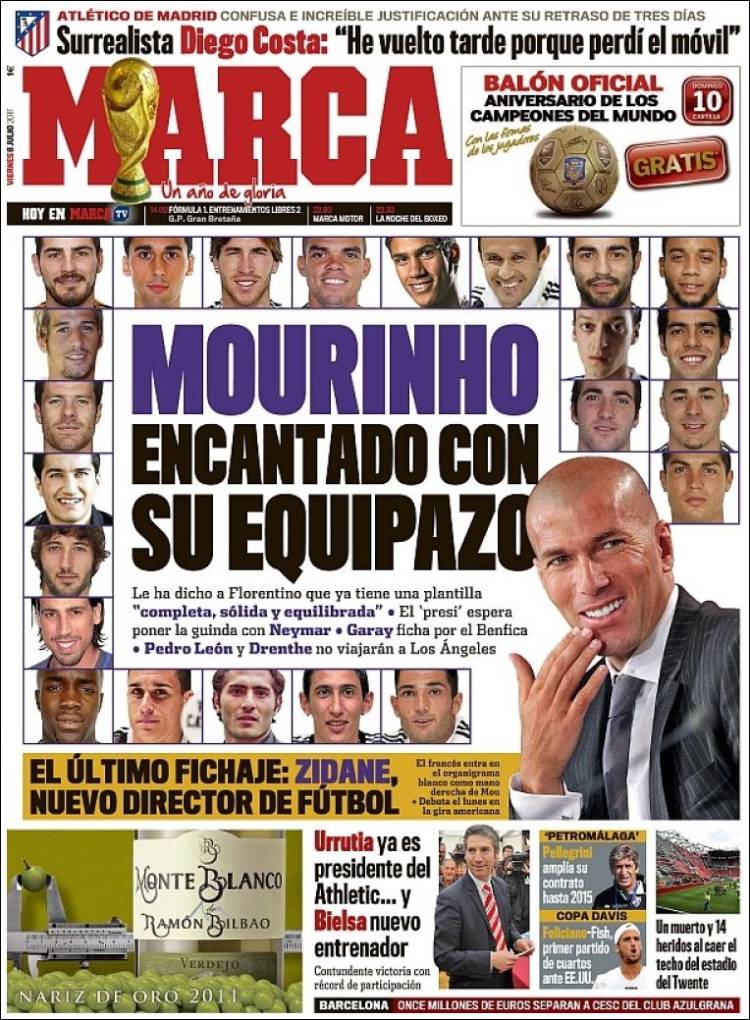 MARCA MOURINHO REAL MADRID – Sul quotidiano spagnolo Marca si parla del Real Madrid con Mourinho che è rimasto soddisfatto dall’attuale rosa del Real.
