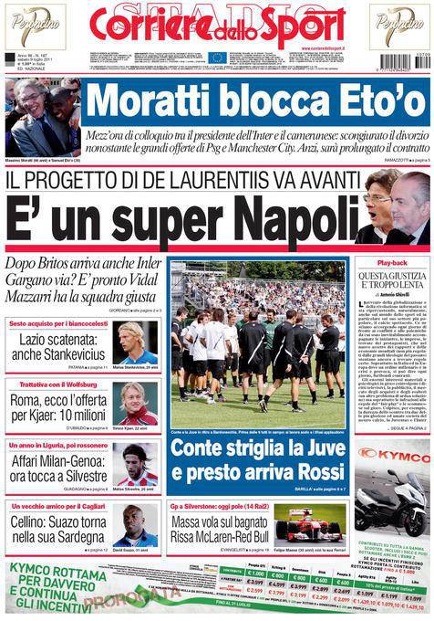 CORRIERE NAPOLI – Il Corriere dello Sport parla del calciomercato del Napoli con De Laurentiis pronto a regalare a Mazzarri una grande squadra.