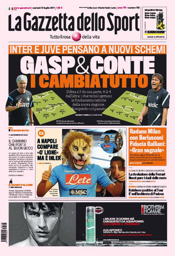 GAZZETTA INTER JUVENTUS – Gasperini e Conte sono pronti a stravolgere Inter e Juventus impostando un nuovo modulo di gioco.