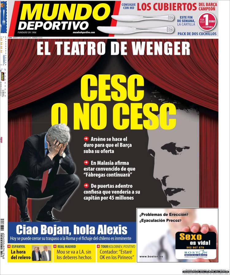MUNDO DEPORTIVO FABREGAS – Il quotidiano catalano Mundo Deportivo parla dell’affare Fabregas con Wenger che non vuole perdere il giocatore.