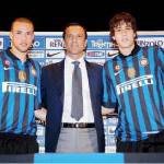CALCIOMERCATO INTER CASTAIGNOS ALVAREZ – Ieri a Pinzolo, nel ritiro dell’Inter, sono stati presentati alla stampa i due nuovi gioielli nerazzurri: Luc Castaignos e Ricardo Alvarez. Il primo ha dichiarato di ispirarsi a Eto’o come tipo di attaccante: “Sono molto veloce e mi piace fare gol, mi ispiro a Eto’o”. L’olandese è arrivato dal Feyenoord per 1,5 milioni di euro, è ancora molto giovane, classe 92′, ma ha già fatto vedere cose importanti. L’altro è Ricardo Alvarez, 23enne ex stella del Velez. Moratti si è innamorato calcisticamente del ragazzo argentino che possiede un sinistro importante: “Sono arrivato nel miglior club del mondo, spero di vincere subito”.