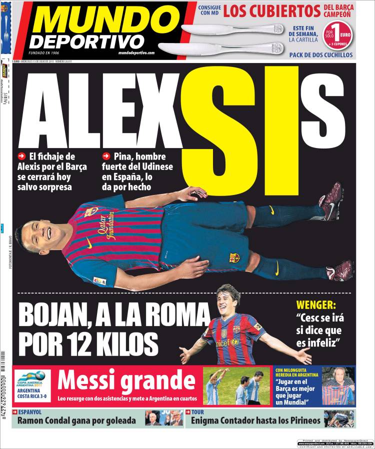MUNDO DEPORTIVO SANCHEZ BARCELLONA – Il quotidiano catalano Mundo Deportivo parla di Alexis Sanchez, talento cileno dell’Udinese che è a un passo dal Barcellona.