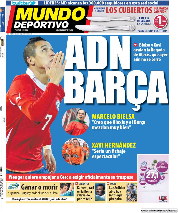 MUNDO DEPORTIVO BARCELLONA – Sul quotidiano catalano Mundo Deportivo si esalta l’acquisto di Alexis Sanchez.
