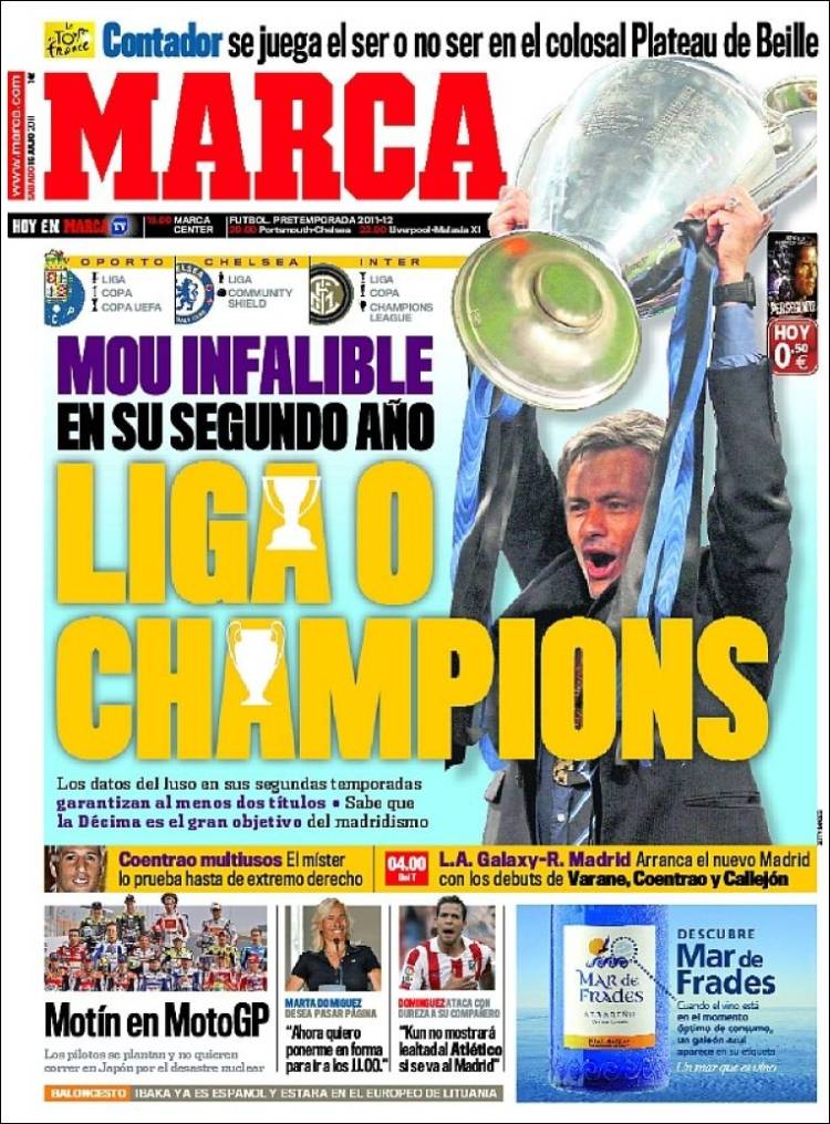 MARCA MOURINHO – Sul quotidiano marca si parla di Mourinho che solitamente al secondo anno ha sempre fatto bene.