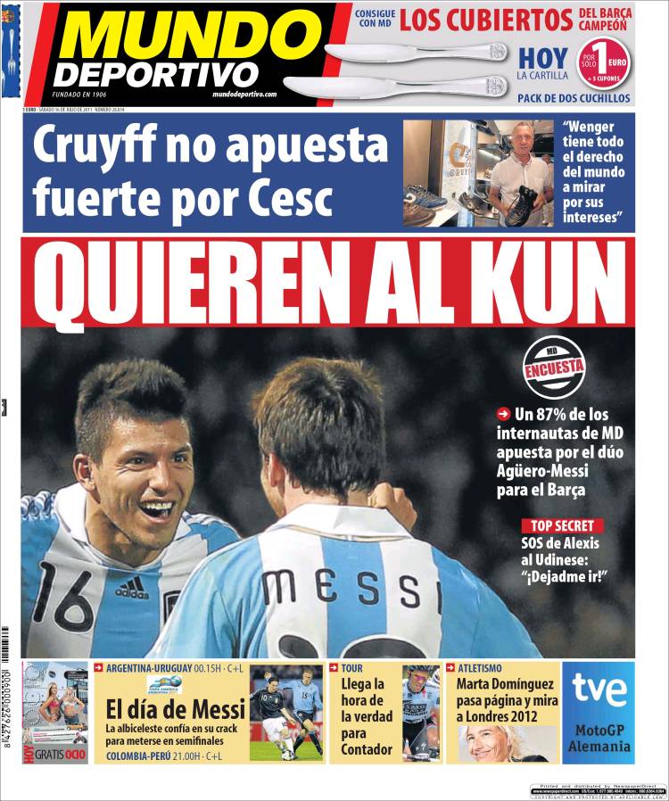 MUNDO DEPORTIVO AGUERO – Sul quotidiano Mundo Deportivo i tifosi del Barcellona hanno votato per l’acquisto di Aguero.