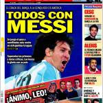 Sport: Tutti con Leo 16/07/2011 di Ruggieri SPORT MESSI – L’Argentina questa notte giocherà nei quarti contro l’Uruguay. Il quotidiano Sport incoraggia Messi. Claudio Ruggieri – www.calciomercatonews.com