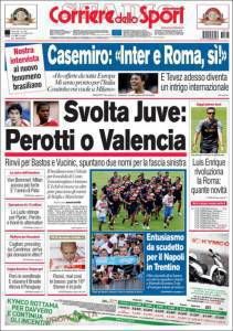 GAZZETTA DELLO SPORT JUVENTUS PEROTTI VALENCIA – Spuntano due nomi nuovi per la fascia sinistra della Juventus. Secondo quanto riportato dalla prima pagina del Corriere dello Sport, sono stati accantonati i nomi di Vucinic e Bastos per fare spazio alle novità: Perotti e Valencia.
