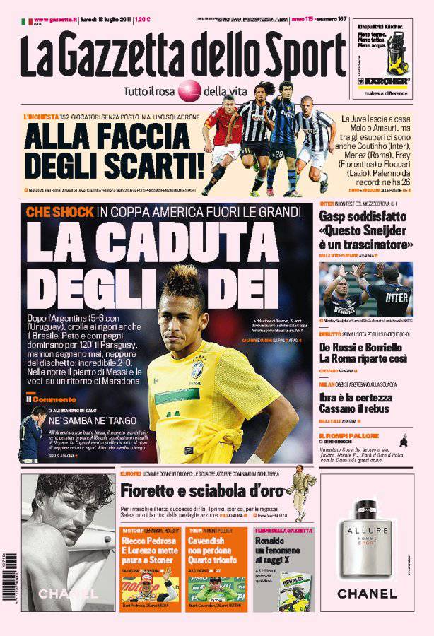 GAZZETTA BRASILE ARGENTINA – In Coppa America vanno fuori Argentina e Brasile eliminate da Perà e Venezuela.