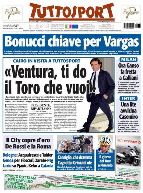 TUTTOSPORT BONUCCI VARGAS – Su Tuttosport si parla di Vargas, esterno della Fiorentina che piace alla Juventus.
