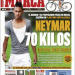 Marca: Neymar, 70 kg 21/07/2011 di Ruggieri MARCA NEYMAR – Sul quotidiano Marca si parla di Neymar, stella del Santos. Il Real Madrid ha già preparato per lui un allenamento speciale. Claudio Ruggieri – www.calciomercatonews.com
