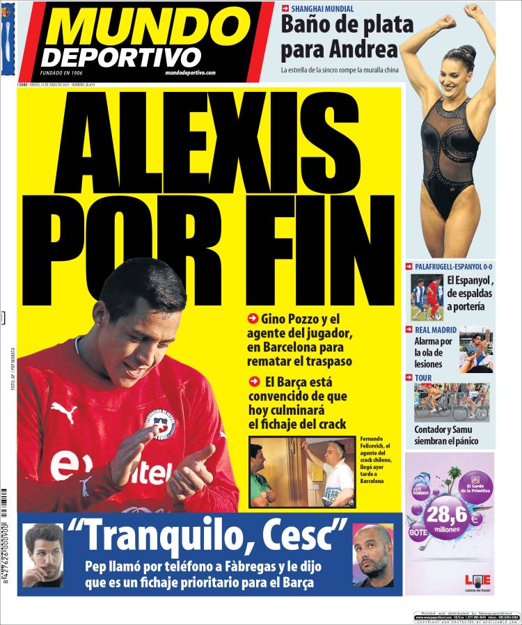 MUNDO DEPORTIVO SANCHEZ – Il quotidiano catalano Mundo Deportivo parla di Sanchez, ormai un giocatore del Barcellona.