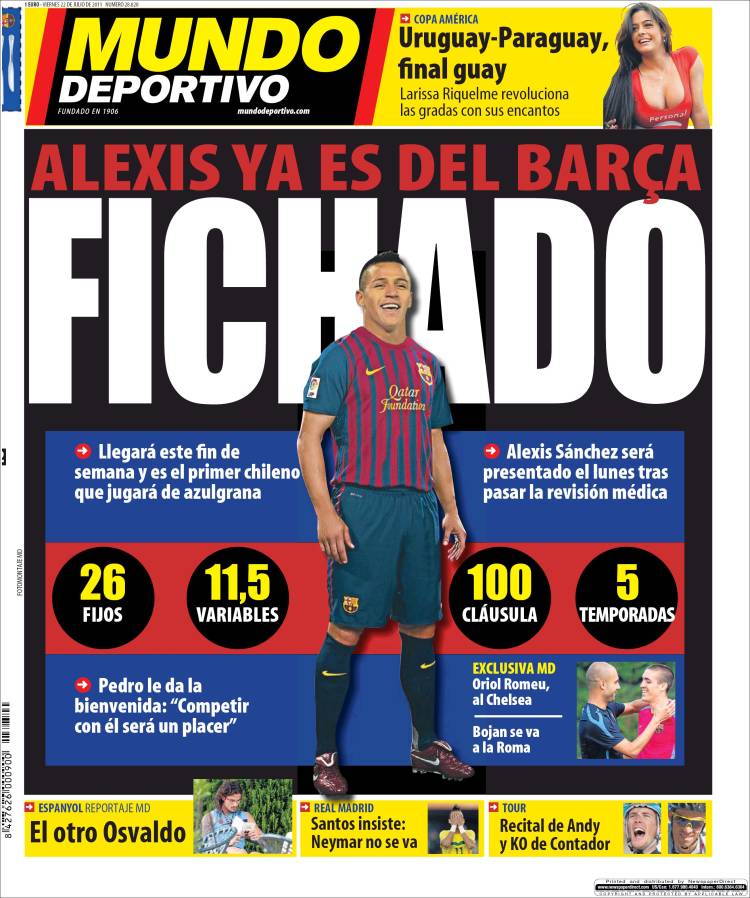 MUNDO DEPORTIVO / Prima pagina del quotidiano spagnolo Mundo Deportivo dedicata all’acquisto di Alexis Sanchez, ufficializzato nella giornata di ieri dopo parecchie settimane di trattativa con i friulani.