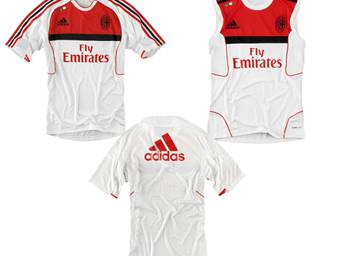 Infine la casacca d’allenamento dei campioni d’Italia, altra splendida divisa. Due le versioni realizzate: con le maniche o sbracciata. La maglia si presenta di colore bianco per tre quarti. Il petto è invece di colore rosso delimitato da una striscia orizzontale nera con i loghi Adidas e Milan anch’essi di colore nero. Le tre strisce Adidas sulle spalle sono rosso e nere e infine sono presenti delle cuciture in rilievo di colore rosso. Sul retro, invece, campeggia il logo Adidas completamente in rosso.