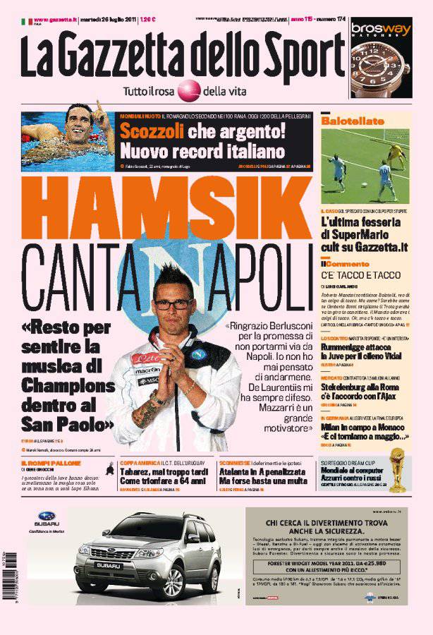 GAZZETTA HAMSIK NAPOLI – Sulla Gazzetta dello Sport si parla di Hamsik che ha giurato fedeltà al Napoli.
