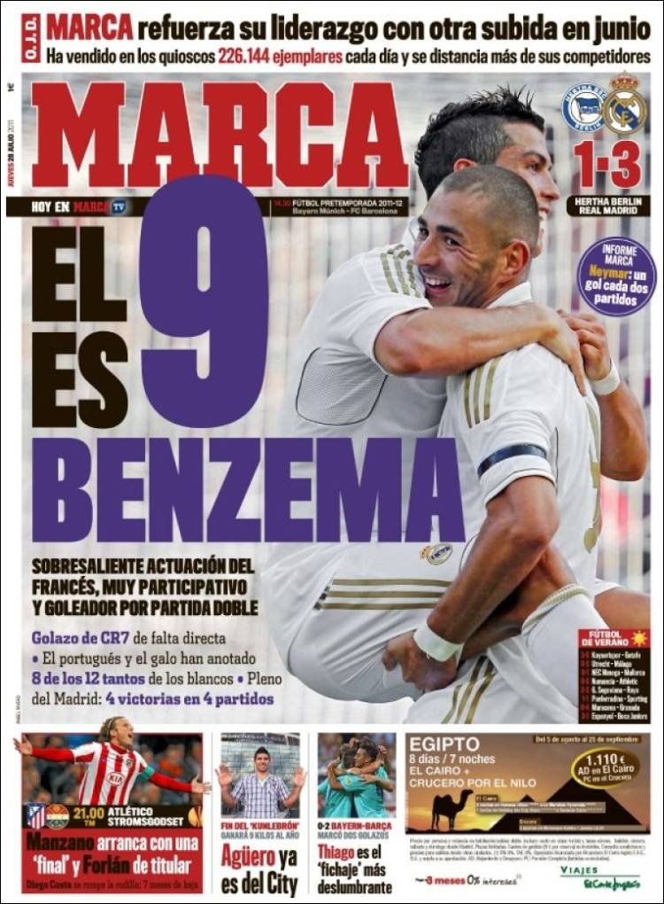 MARCA BENZEMA – Sul quotidiano Marca si parla di Benzema protagonista nel match tra Real Madrid e Hertha Berlino.