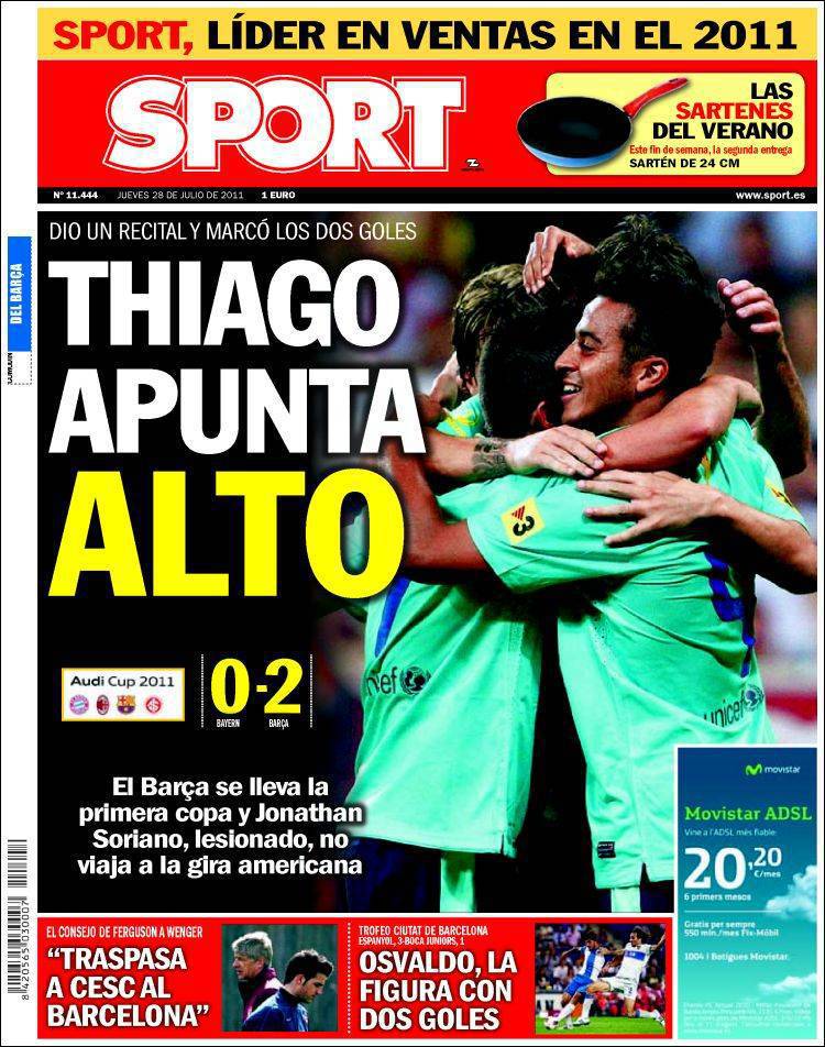 SPORT THIAGO ALCANTARA – Anche Sport parla di Thiago Alcantara, autore di due gol contro il Bayern Monaco.