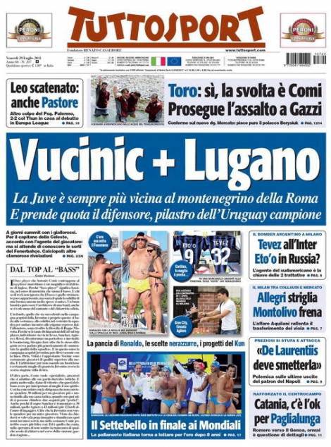 TUTTOSPORT VUCINIC LUGANO – Anche Tuttosport parla del doppio colpo Juventus con il possibile arrivo di Vucinic e Lugano.