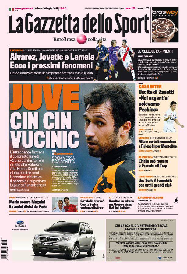 GAZZETTA VUCINIC – Sulla Gazzetta dello Sport si parla di Mirko Vucinic, prossimo acquisto della Juventus.