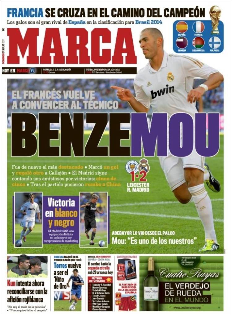 MARCA BENZEMA MOURINHO – Fotonotizia nella prima pagina di Marca dedicata al Francese Karim Benzema: l’attaccante vuole convincere il suo tecnico Josè Mourinho affinchè possa rimanere a Madrid.