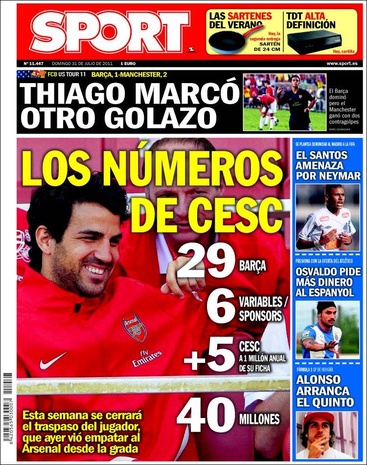 SPORT FABREGAS – Avrà finalmente una conclusione la telenovela Fabregas? Il quotidiano Spagnolo Sport pubblica comunque i numeri dell’operazione: 40 milioni totali per prelevare il centrocampista dell’Arsenal.