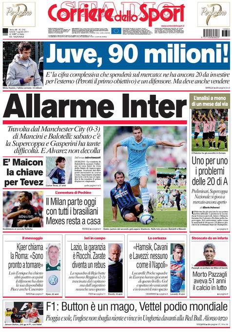 CORRIERE INTER – Sul Corriere dello Sport si parla dell’Inter che ha perso tre a zero in amichevole.