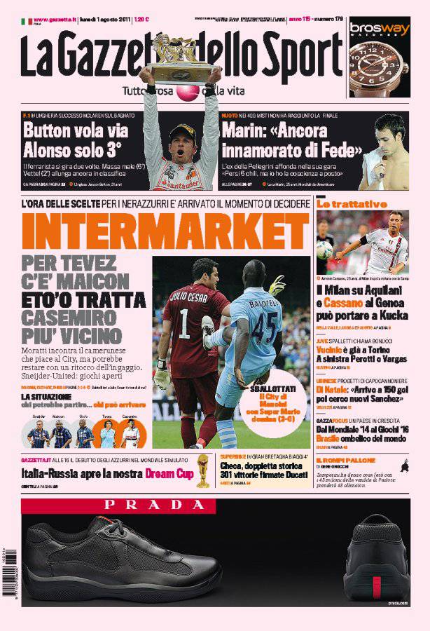 GAZZETTA INTER – Sulla Gazzetta dello Sport si parla della campagna acquisti dell’Inter che potrebbe portare alla cessione di Maicon in cambio di Tevez.