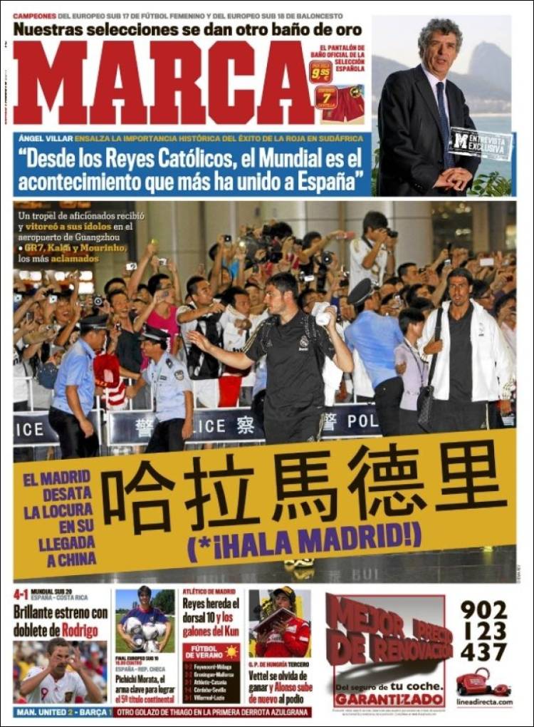 MARCA MADRID – Sul quotidiano Marca si parla del Real Madrid che ha iniziato la sua tournée in Cina.