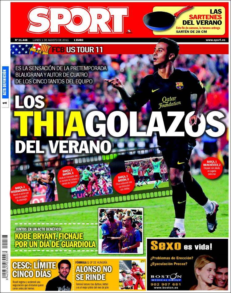 SPORT THIAGO ALCANTARA – Anche il quotidiano Sport parla del grande gol di Thiago Alcantara, centrocampista del Barcellona.