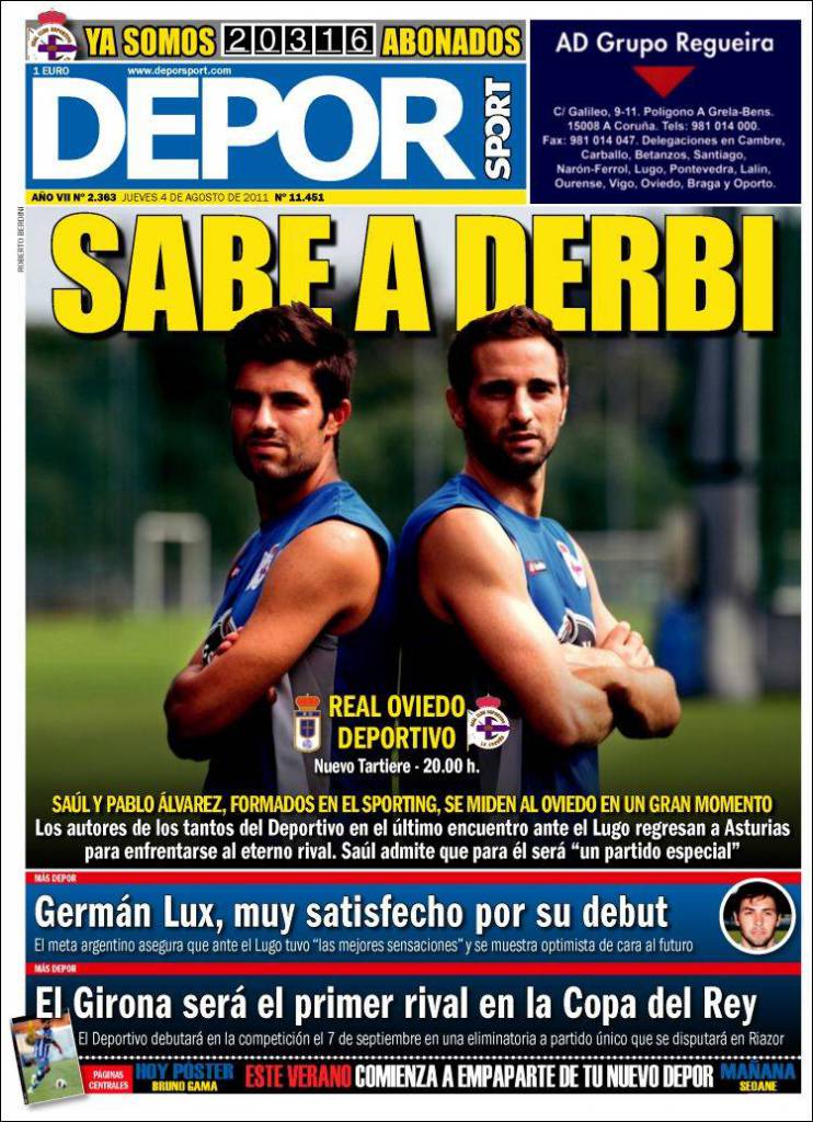 DEPOR SPORT – Sul quotidiano Depor Sport si parla dell’amichevole di questa sera tra il Real Oviedo e il Deportivo La Coruna.