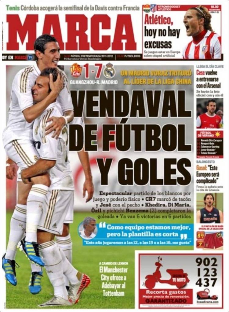 MARCA REAL MADRID – Sul quotidiano Marca si parla del Real Madrid che nella sua prima amichevole in Giappone ha vinto sette a uno.