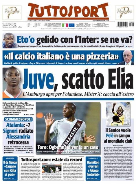 TUTTOSPORT ELIA JUVENTUS – Su Tuttosport si parla di Elia, esterno dell’Amburgo che piace alla Juventus.