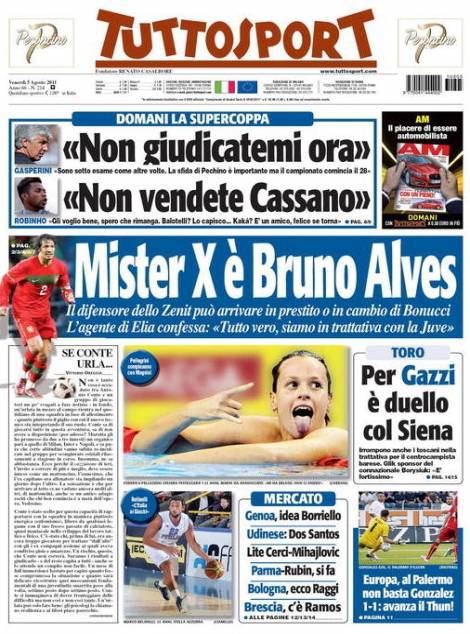 TUTTOSPORT BRUNO ALVES – Bruno Alves è il difensore dello Zenit che piace alla Juventus. Potrebbe arrivare in cambio di Bonucci.