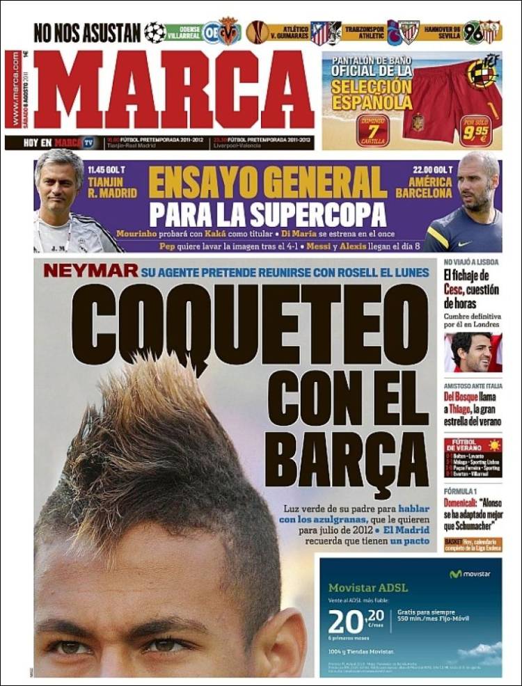 MARCA BARCELLONA – Sul quotidiano Marca si parla di Neymar che sembra aver un flirt con il Barcellona. L’agente incontrerà Rosell lunedì.