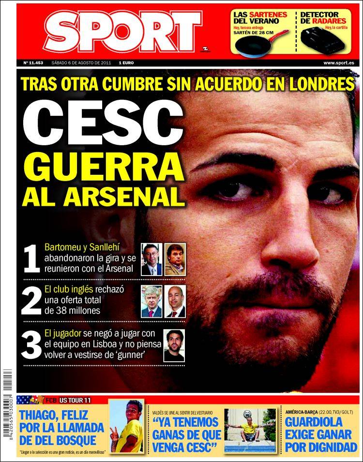 SPORT FABREGAS ARSENAL – Sul quotidiano catalano Sport si parla di Fabregas che ha dichiarato guerra all’Arsenal per approdare al Barcellona.